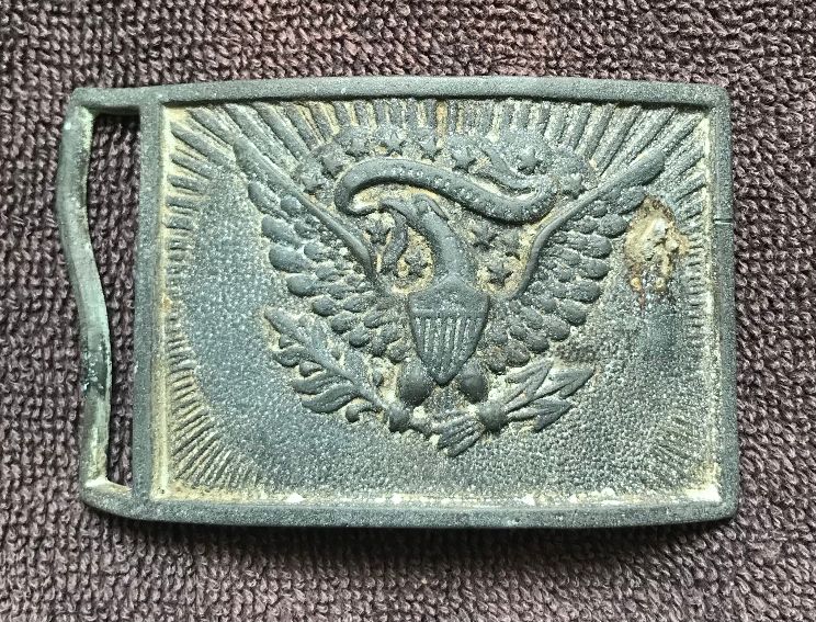 Similar to Plate 664 on Page 400 in book AMERICAN MILITARY BELT PLATES by Michael J. O'Donnell & J. Duncan Campbell. Benchmark 360 on rear. Approximately 55mm by 90mm.
