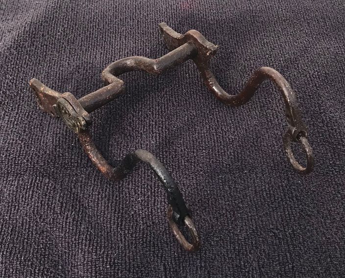 $75.00 Excavated from Battle of Cedar Creek area. Nice relic still retaining one of the US rosettes. One leg has a little wobble. Has been coated with some type of sealer. I am certain this could be removed.