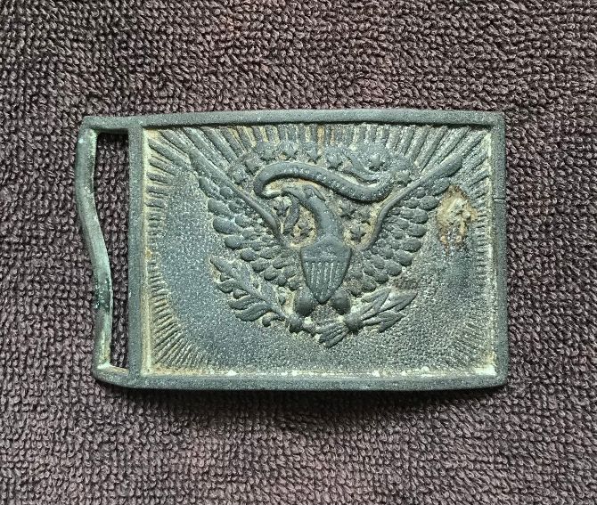$210.00 Similar to Plate 664 on Page 400 in book AMERICAN MILITARY BELT PLATES by Michael J. O’Donnell & J. Duncan Campbell. Benchmark 360 on rear. Approximately 55mm by 90mm.