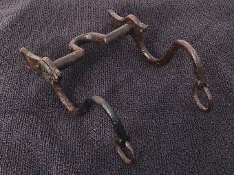 $75.00 Excavated from Battle of Cedar Creek area. Nice relic still retaining one of the US rosettes. One leg has a little wobble. Has been coated with some type of sealer. I am certain this could be removed.