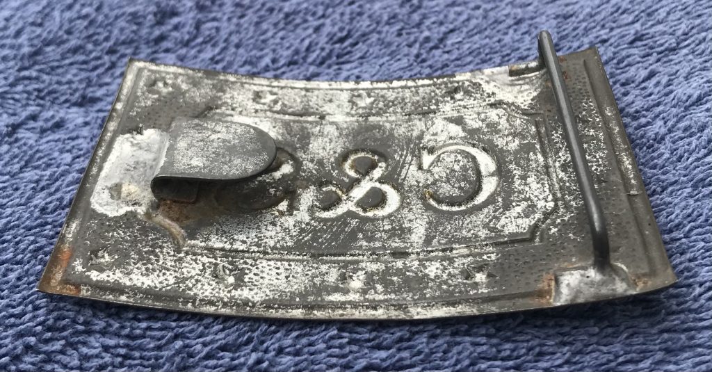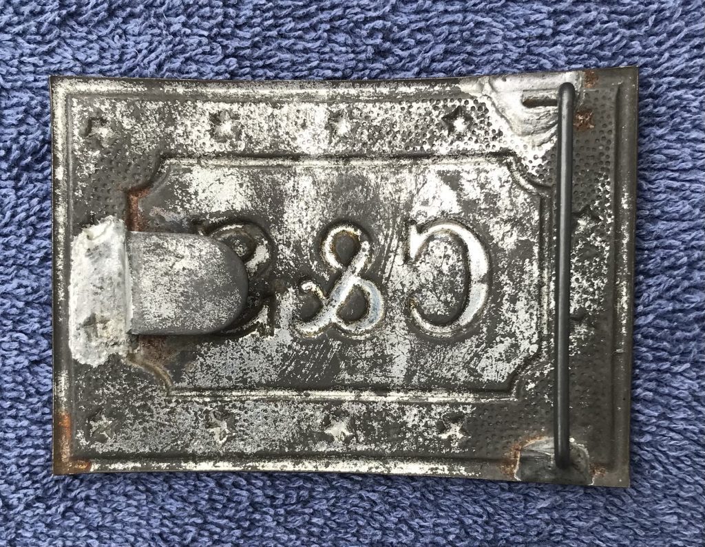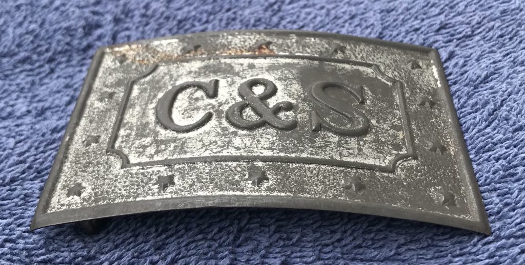 From the 1892 campaign of Grover Cleveland for President and Adali Stevenson for Vice President. Embossed from sheet tin. Approximately 58mm by 85mm.